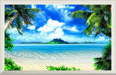 絵画風 壁紙ポスター (はがせるシール式) -窓の景色- ハワイ マウイ島のビーチと島々 ヤシの木 海 【扉...