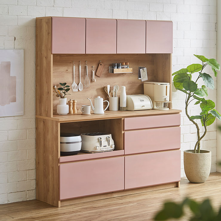 食器棚 キッチン収納 キッチンキャビネット レンジ台 カップボード キッチン 収納ラック 棚 スライド 台所 160cm 幅160 おしゃれ くすみカラー 完成品 ROOM投稿キャンペーン