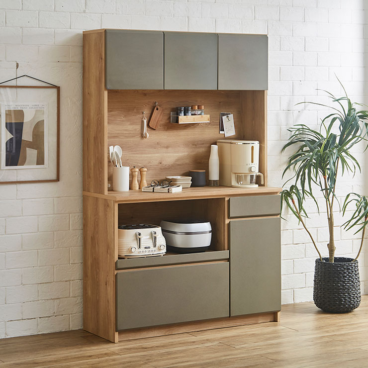 食器棚 キッチン収納 キッチンキャビネット レンジ台 カップボード キッチン 収納ラック 棚 スライド 台所 120cm 幅120 おしゃれ くすみカラー 完成品 ROOM投稿キャンペーン