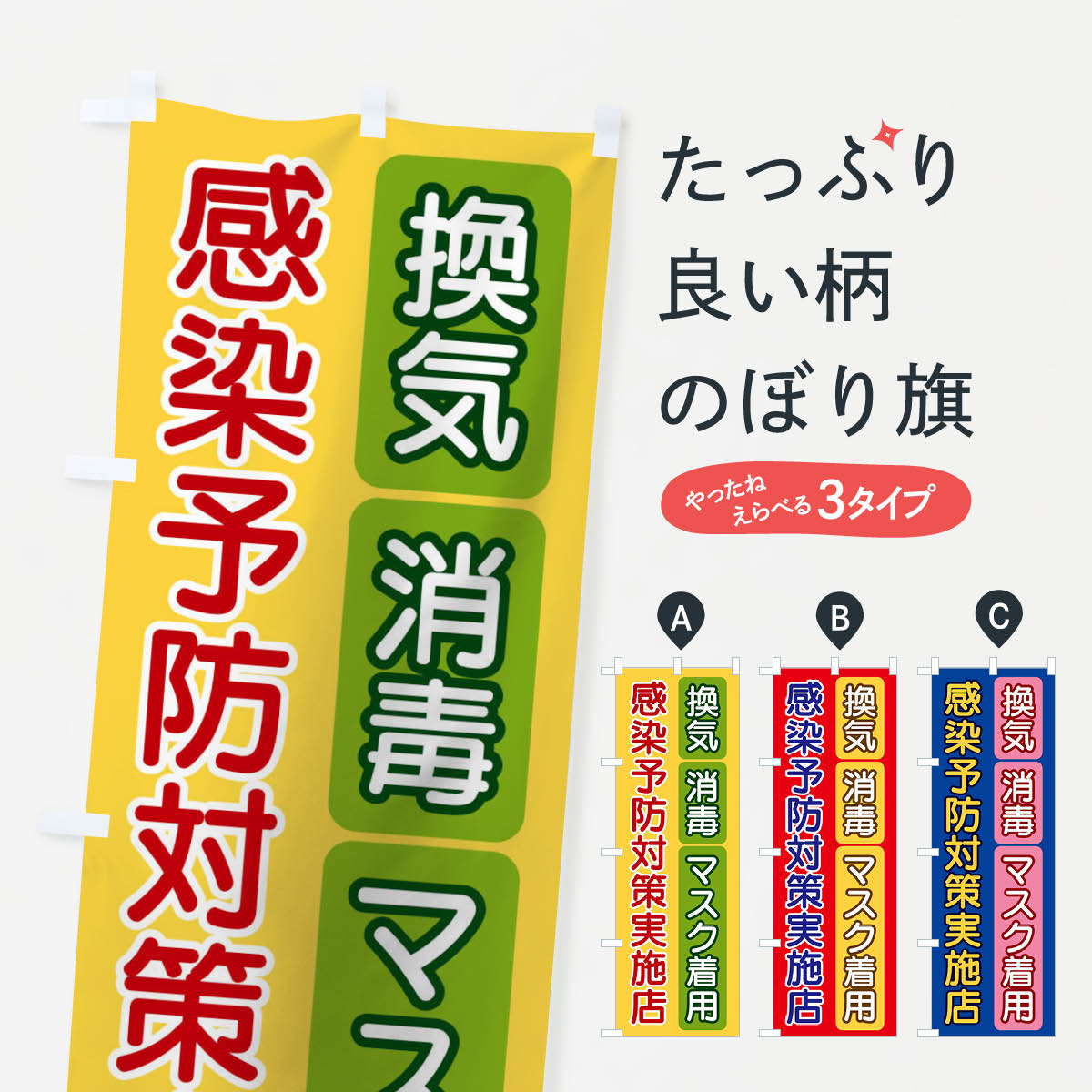 【ネコポス送料360】 のぼり旗 感染予防対策実施店のぼり 15AH 換気 消毒 マスク着用 防災対策 グッズプ...