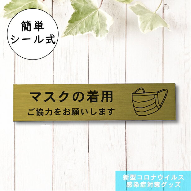 サインプレート (マスクの着用ご協力をお願いします) 真鍮風 ゴールド 新型コロナウイルス対策 感染防止...