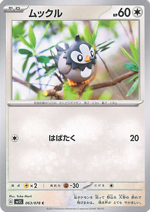 ★収録:ポケモンカードゲーム サン&ムーン 拡張パック「覚醒の勇者」 ■カード名:ムックル ■HP:60/タイプ:無 ■分類:たねポケモン ■ワザ ●無:わしさがし 相手の手札をみる。 ●無無:はばたく/ダメージ:20 ■弱...