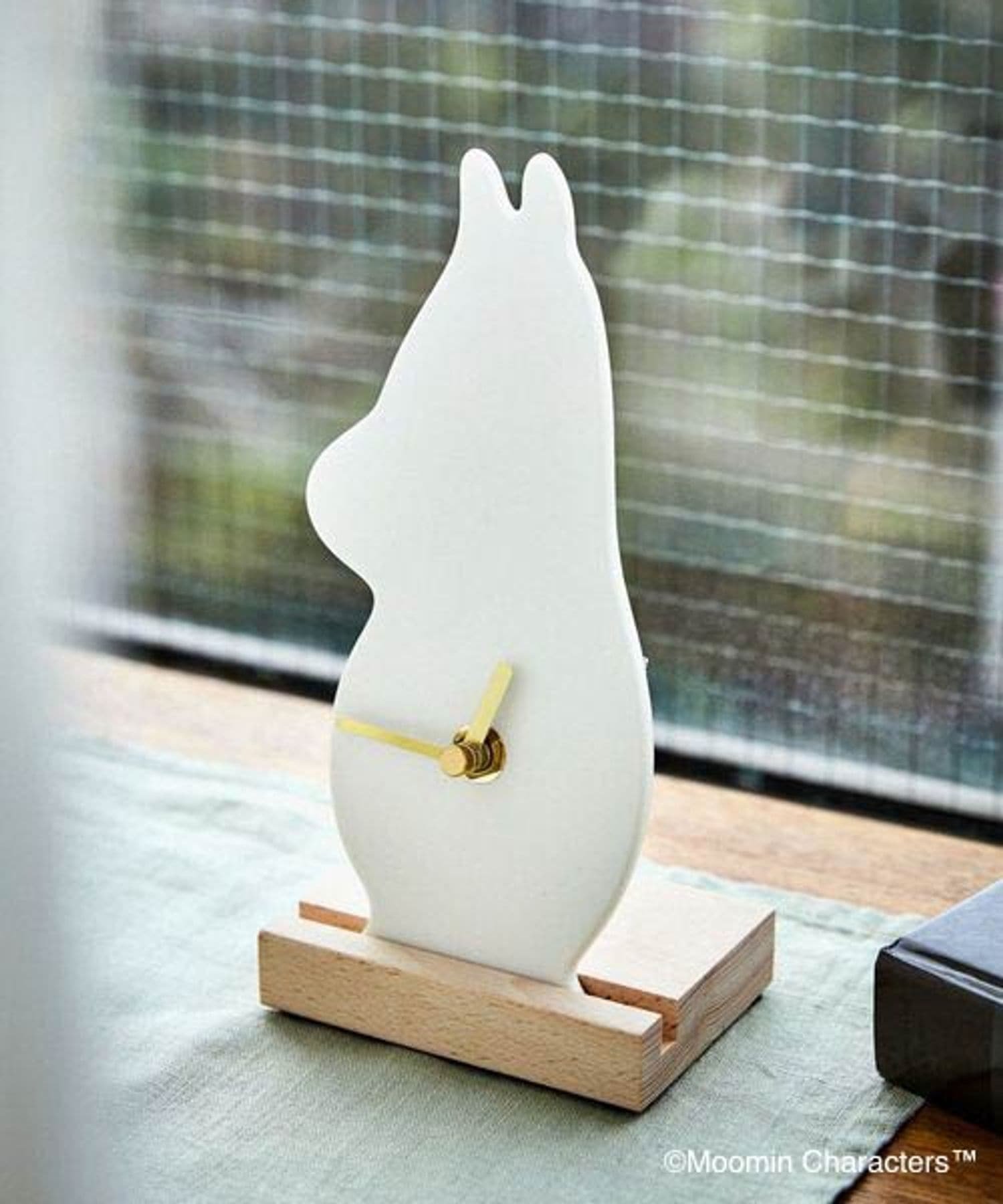 studio CLIP(スタディオクリップ)トウキ置き型時計<ムーミンコラボ>インテリア性が高くお部屋のアクセントにも!キャラクターのシルエット型デザインの置き時計。ホワイト×ゴールドの色合いが品よく、木製の...