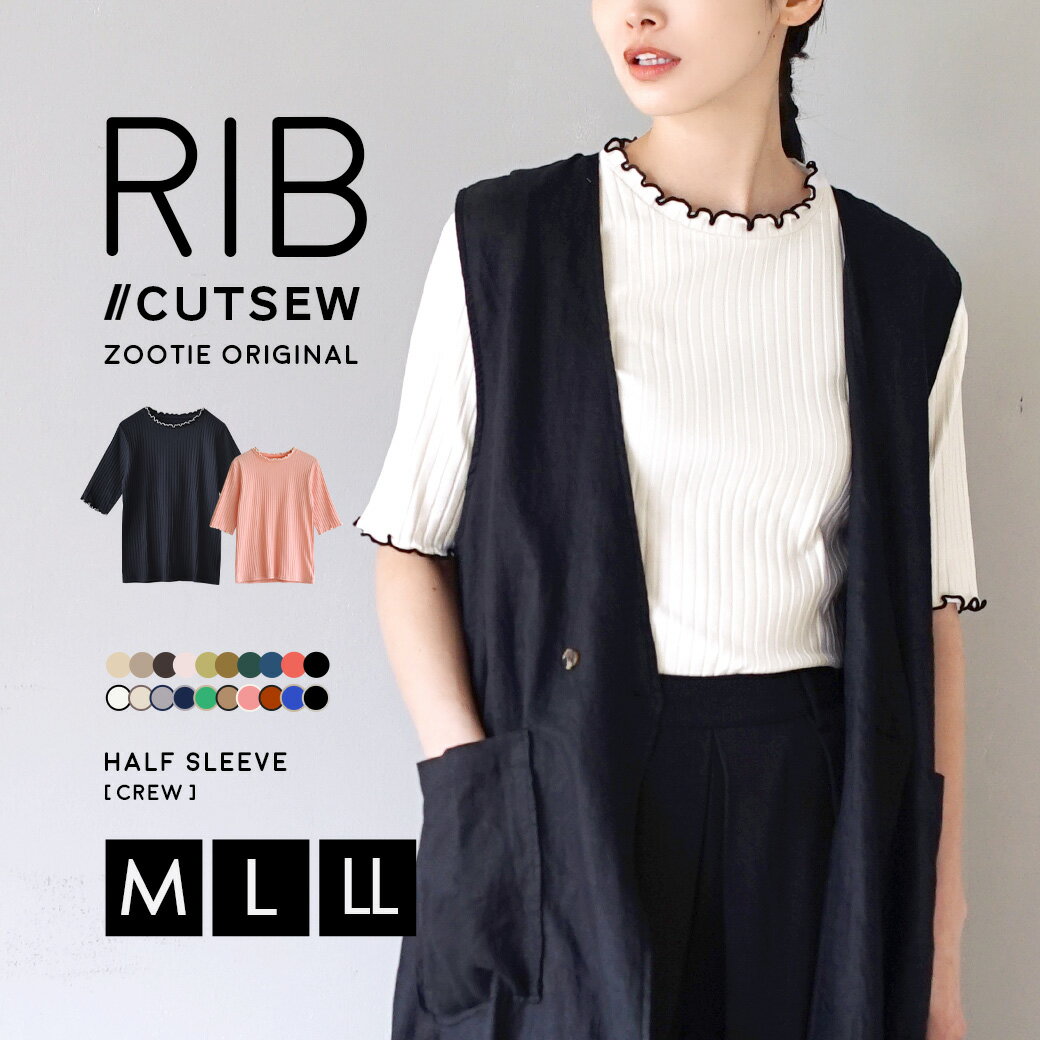 【特別送料無料!】リブカットソー トップス レディース M/L/LL カットソー 半袖 五分袖 5分袖 リブ Tシ...