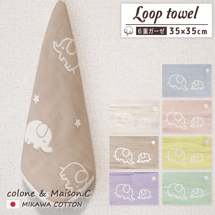 ループタオル 【 ゾウ柄 】 6重ガーゼ ループ付き ガーゼハンカチ ハンカチタオル ウォッシュタオル 保...