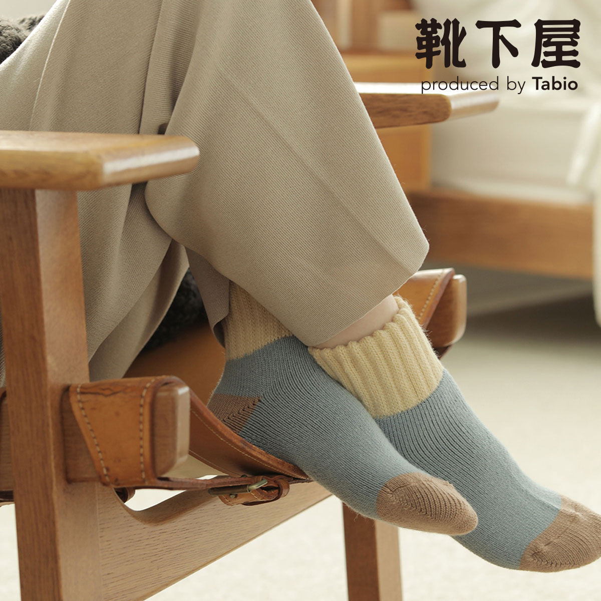 【公式 靴下屋】 切替 アメリブ ネップ パイル ルームソックス / 靴下 タビオ Tabio くつ下 ルーム ソックス ショート くるぶし上 毛混 ウール 冬 ふかふか 部屋履き レディース 日本製