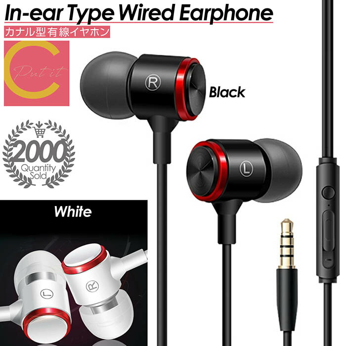 おかげさまで累計販売数2,000個突破! 【商品名】カナル型有線イヤホン 【商品説明】 ■スマホ、タブレット、PC兼用の有線イヤホン! ■高音質、快適な装着感、マイクを搭載していて ハンズフリーでの通話が可能...