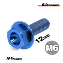 チタンボルト M6×12 P1.0 ブルー 1本 64チタン フランジボルト 全ネジ Ti-6Al-4V Gr5 チタン合金 バイク...