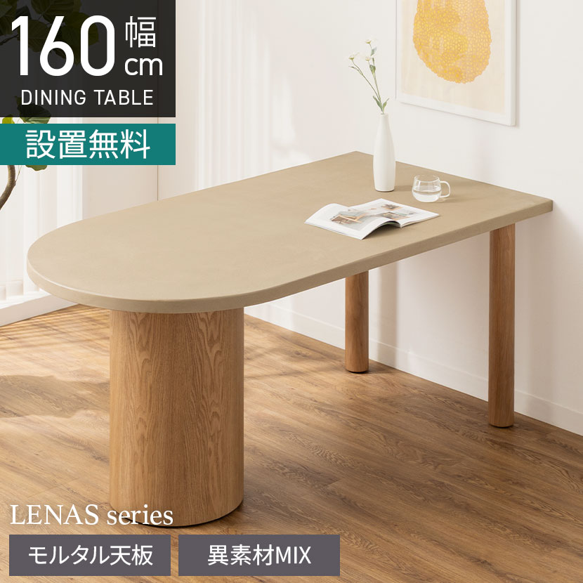 【レビュー特典あり】レナス 食卓のテーブル 食卓用 食卓机 4人用 4人掛け 半円テーブル 変形テーブル 半楕円 北欧 モダン ベージュ 暮らしのデザイン 楽天市場店