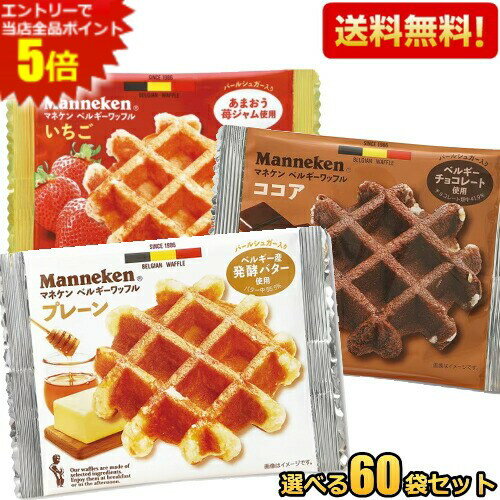 マネケン ベルギーワッフル 選べる組合せ60袋セット プレーン いちご ココア ワッフル