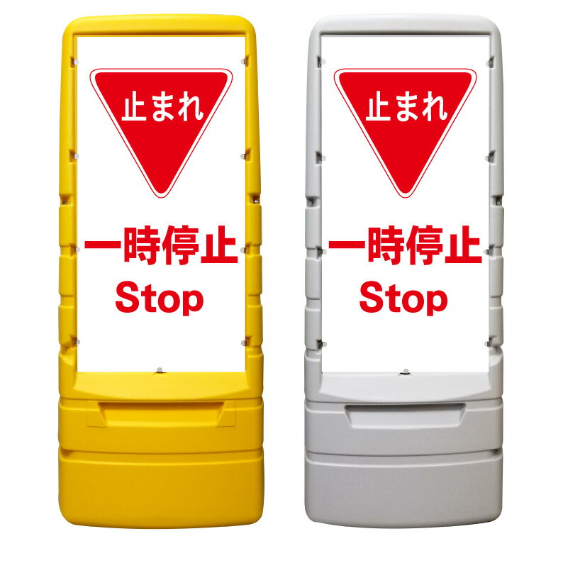 サインキューブ「一時停止 止まれ」片面のみ 反射あり 立て看板 駐車場 スタンド看板 標識 注水式 ウェ...