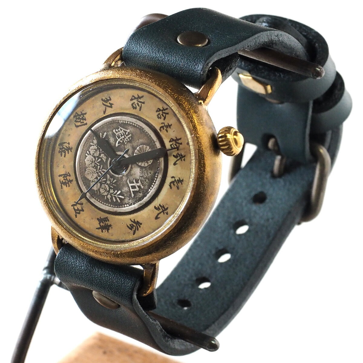 渡辺工房 手作り腕時計 斜め文字盤 “倭ノ刻(わのこく) 七” 五銭硬貨 甲丸ケース ジャンボブラス 38mm [N...