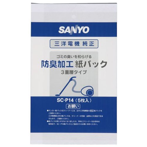 ・ホワイト 5枚入り ・・Size:5枚入り・サンヨー クリーナー用 純正紙パック(5枚入)SANYO SC-P14サンヨークリーナー交換用純正紙パックです。(br)●フラボノイド入防臭・標準スリムタイプ(br)●対応機種/サンヨー...