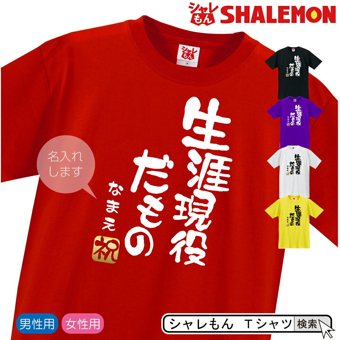 敬老の日 名入れ プレゼント Tシャツ ( 生涯現役だもの )( 金祝 ) 赤 黒 白 紫 黄 誕生日 還暦 古希 お...
