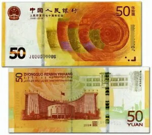 2018 年中国人民元 70 周年記念紙幣人民元 50 元 1 個、UNC