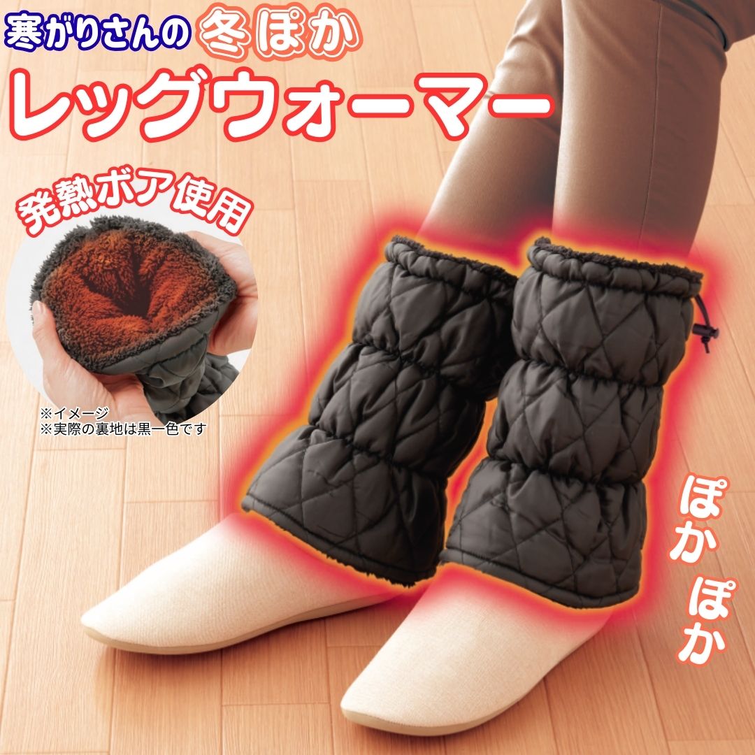 寒がりさんの冬ぽか レッグウォーマー 発熱ボア 厚手 冬用 足元冷え対策 就寝時 寒さ対策 男女兼用 ブラ...