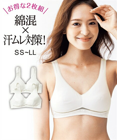 ブラジャー 綿混 Uバック ノンワイヤー スポーツブラジャー 2枚組 ニッセン 女性 下着 レディース セッ...