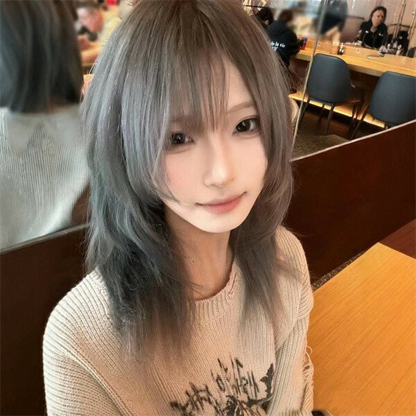 ウィッグ ミディアムへア ストレート グレー 前髪あり 前髪ぱっつん フルウィッグ 可愛い コスレ ロリー...
