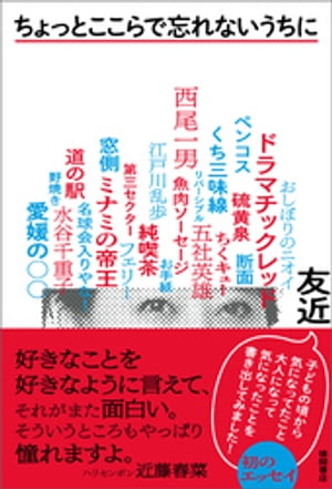 <p>友近、初エッセイ。</p> <p>これまでの人生の中で、ひっかかってきたこと、面白がってきたことを「ここらで忘れないうちに」書き留めた初のエッセイ。私生活、幼少時代、つい口をついて出てきてしまうネ...
