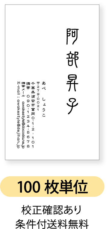 名刺作成前のイメージ確認あり。お返事を頂いてからの名刺印刷です。スピード納期、名刺 デザイン 名刺作成 おしゃれ、かわいい、かっこいい、シンプル、スタイリッシュほか