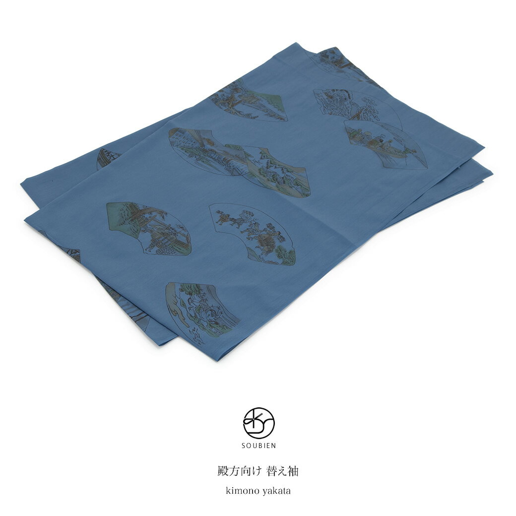 替袖 メンズ 青系 ブルー 名所旧跡文 大風の畑 旅の風景 おそでじ 半襦袢 替え袖 かえそで ...