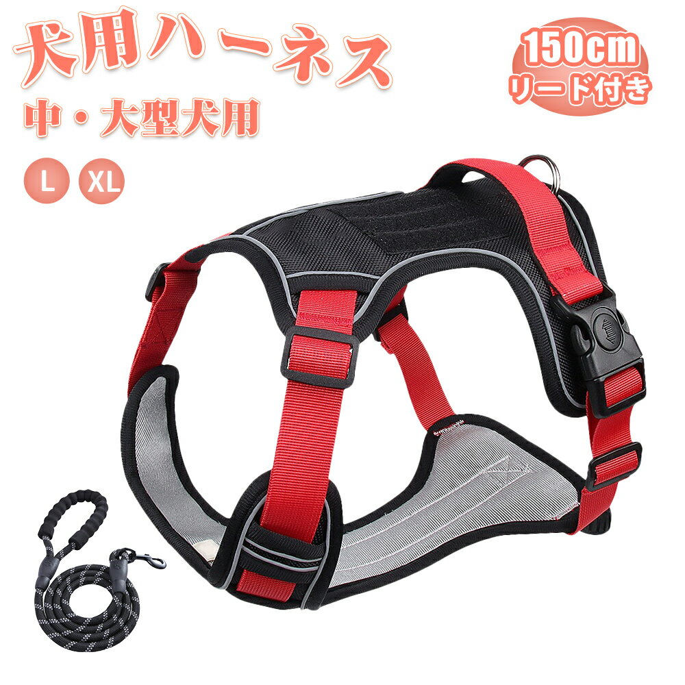 【送料無料】犬用ハーネス リード付き アウトドア シンプル おしゃれ 中型犬 大型犬 胴輪 引っ張り防止 ...