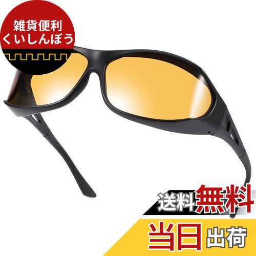 [TINHAO] 夜間サングラス 夜間運転用サングラス 夜間メガネ メガネの上から 夜間オーバーグラス イエロ...