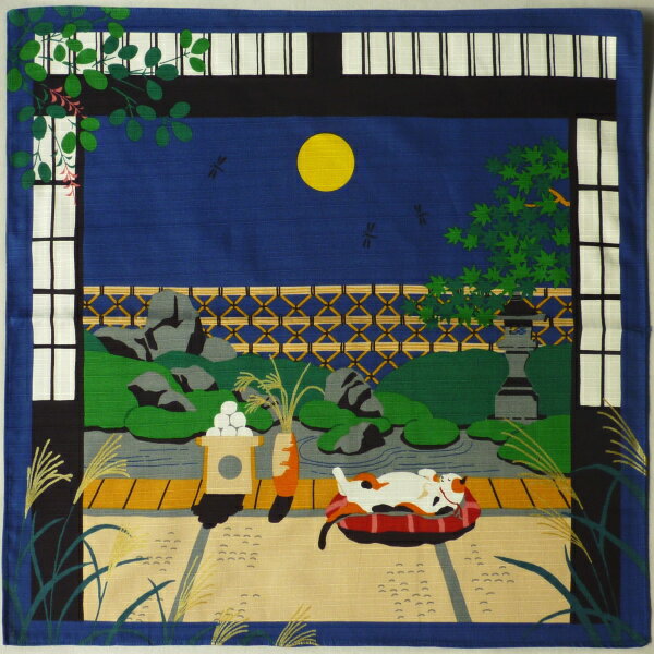 三毛猫みけの夢日記 小ふろしき〔みけとお月様〕9 日本製 綿100% 中巾 約50cm 日本の四季 歳時記 お...