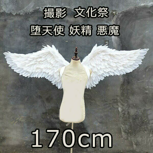 天使の羽 悪魔の羽 コスプレ道具羽 翼 白 wing フェザー ウイング 155cm エンジェル 天使みたい 堕天使 ...