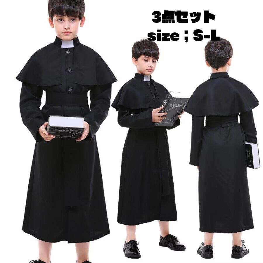 【レビュープレゼント付!】キッズ コスプレ 神父 男の子 ハロウィン 神父服 衣装 子供用 仮装 子供 宣...