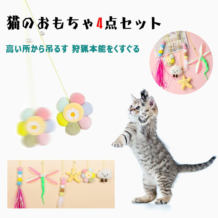 【最大20%OFFクーポン】 猫 おもちゃ 4点セット 吸着盤付き 高い所から吊るす 鈴付き 揺れる 鈴が鳴る ...