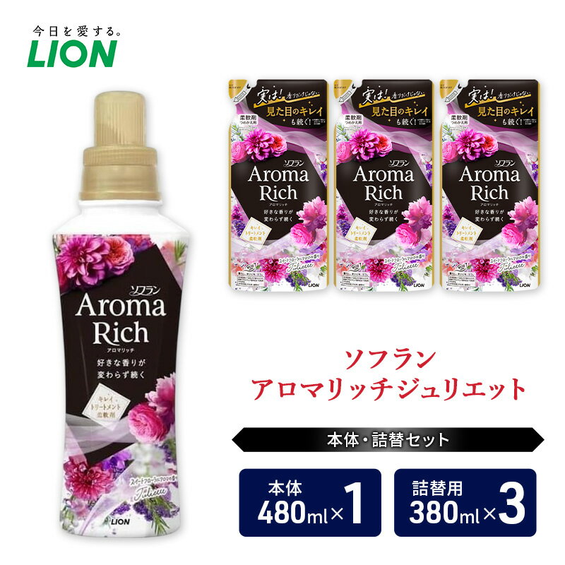 【ふるさと納税】衣類用柔軟剤 ソフランアロマリッチジュリエット 本体+詰め替え用3袋 ライオン LION ...