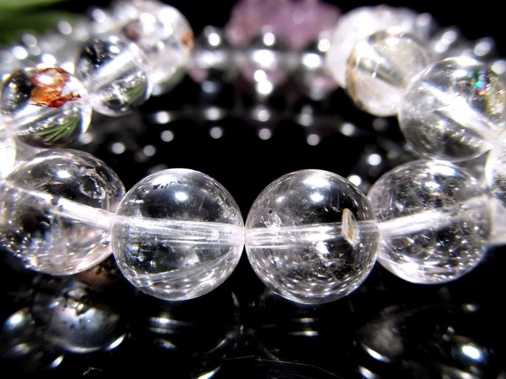 幻想的な蛍光発色 古代の石油を内包した激レア水晶 オイルインクォーツ【石油入り水晶】ブレスレット 約7.5〜8ミリ 内径約16.5センチ【パキスタン産】 こちらの商品は1点ランダム発送となります! 超希少なオイル...