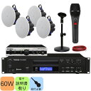 セット内容:天井埋め込みスピーカー×4/ミキシングパワーアンプ×1/スピーカーケーブル80m×1/TASCAM CDプレイ・Bluetoothオーディオレシーバー×1/接続用ケーブル/スイッチ付きダイナミックマイク(マイクケーブル付...