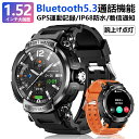 スマートウォッチ 軍用規格 1.52インチ Bluetooth5.3通話 スポーツウォッチ 600mAh長持ちバッテリー 着...