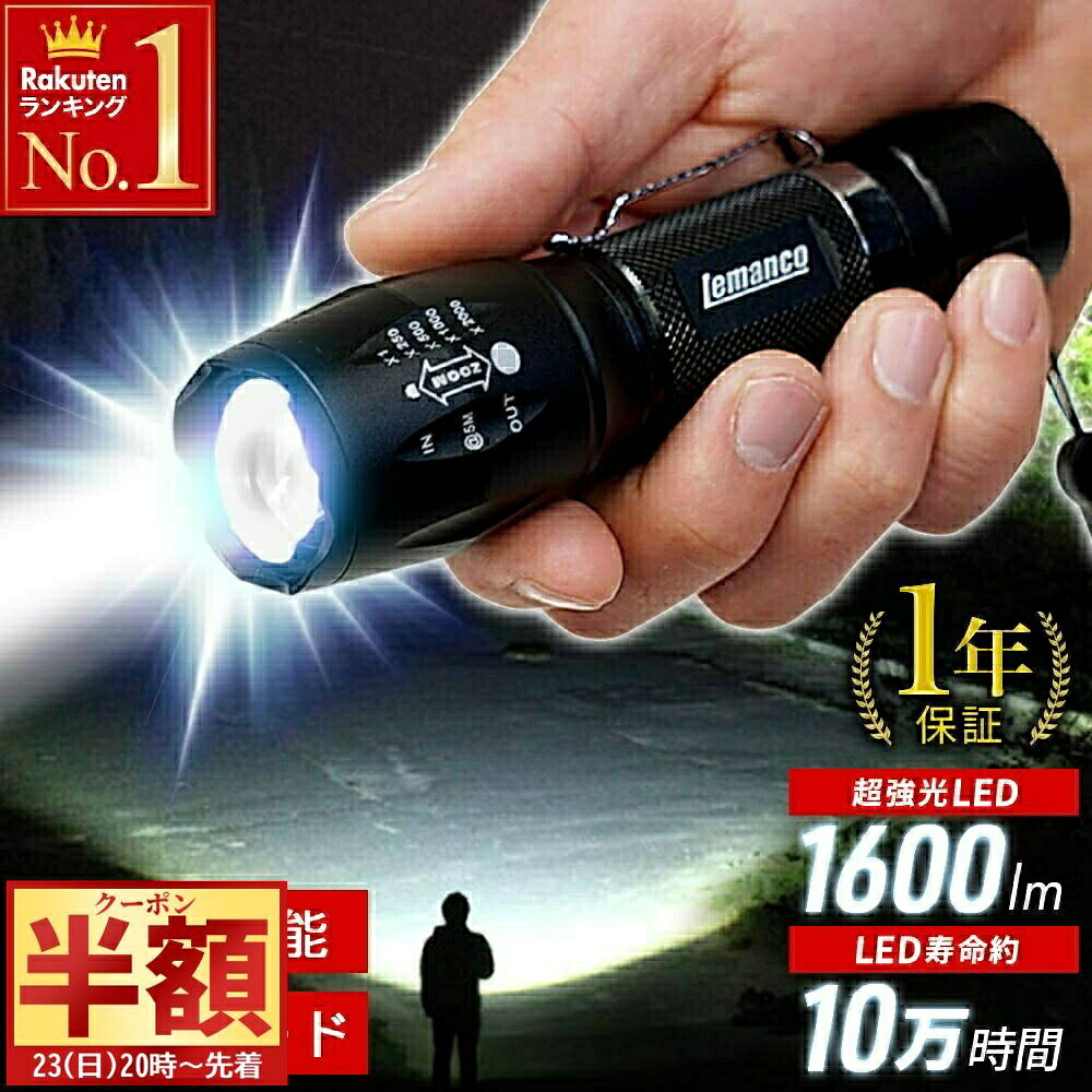 \楽天1位 累販10,000個/ 懐中電灯 電池式 led 強力 小型 軍用 最強 ルーメン 明るい ledライト 高輝度...