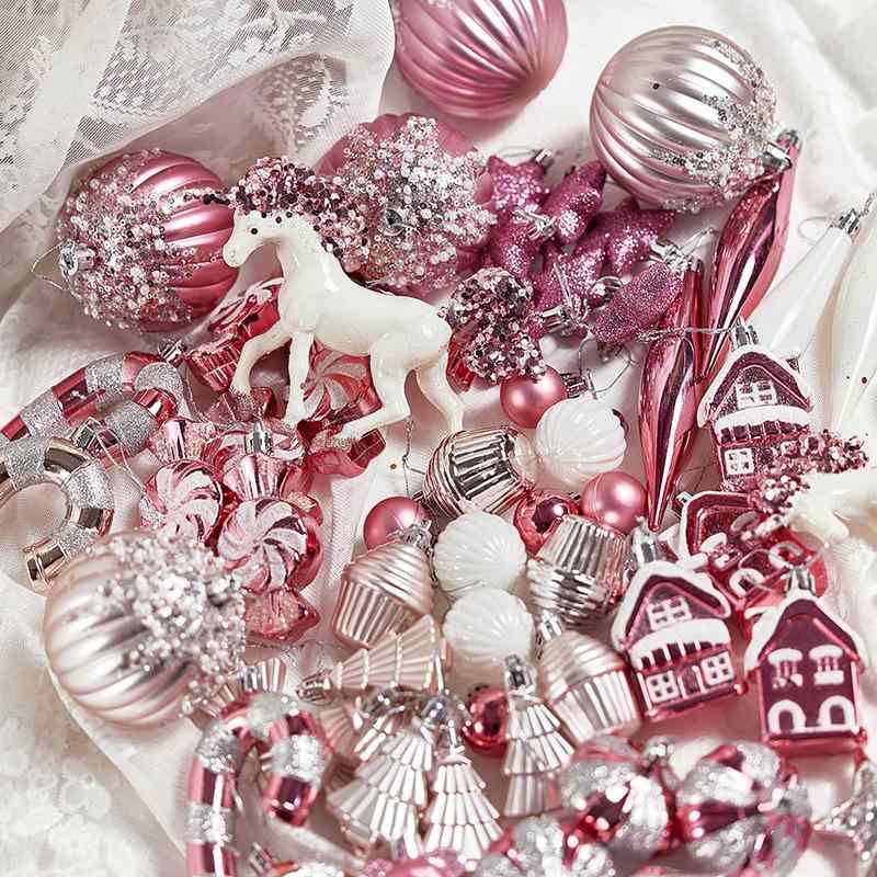 クリスマスオーナメント ピンク 変形デザイン 手描き PVC製 ライトラグジュアリー クリスマスツリーボー...