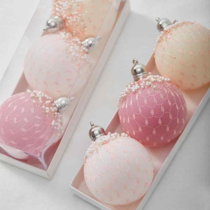 クリスマスオーナメント 8cm メッシュ ゴールド ピンク 電気メッキ加工 手描き PVC樹脂製 韓国風 ボール...