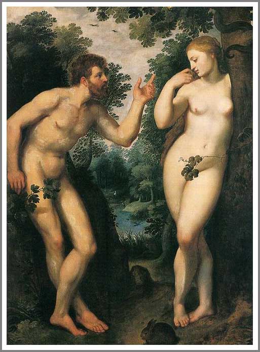 手描き 油絵 複製画 ピーテル・パウル・ルーベンス「楽園のアダムとエヴァ」 額付き 送料無料