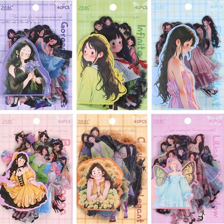 即日発送 たっぷり40枚20柄 手描き風 面白く かわいい 女の子 イラストシール 大きめサイズ トレス姿 通学 制服 女子 耐水 透明 シール 手帳 ファイル ラブレター ハンドメイド DIY