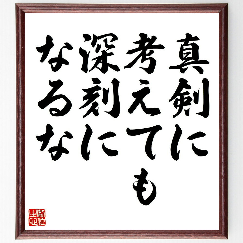 【商品説明】名言「真剣に考えても、深刻になるな」を書道家が毛筆書道で色紙に直筆、額に入れてお届けします。当店では挑戦、努力、成功、幸福、感謝、成長、家族、仕事、自己啓発など様々なテーマから人生の糧...