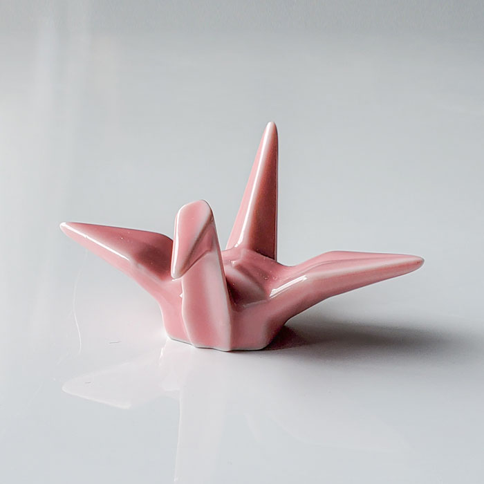 商品につきまして 子供の頃折り紙で折った鶴のかたちをした、ピンク色した陶製の箸置きです。 鶴の背中にちょこんと箸を乗せてくれます。 縁起が良いといわれている鶴は、おめでたいシーンに欠かせない存在。 ...