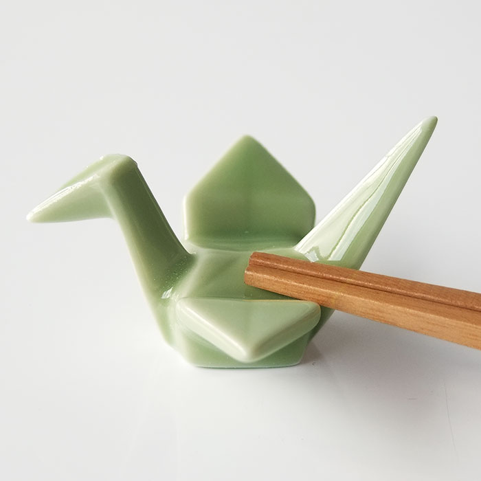 商品につきまして 子供の頃折り紙で折った鶴のかたちをした、黄みのある緑色で小鳥のようなかわいらしい雰囲気のする商品の箸置きです。 鶴の背中にちょこんと箸を乗せてくれます。 縁起が良いといわれている鶴...