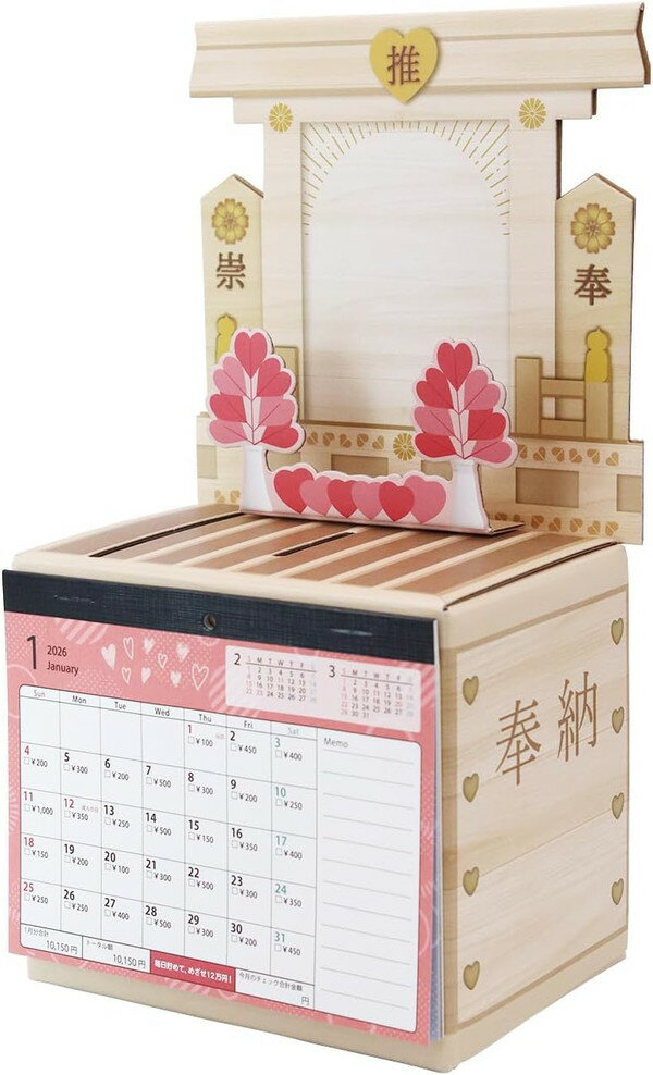 推しの写真やアクスタも飾れる推し活応援貯金箱が登場置き型 貯金 カレンダー プレゼント 令和8年 卓上 スタンドカレンダー毎年人気の貯金カレンダーから[推し祀り貯金カレンダー]が登場 あなたには大切な推しの...
