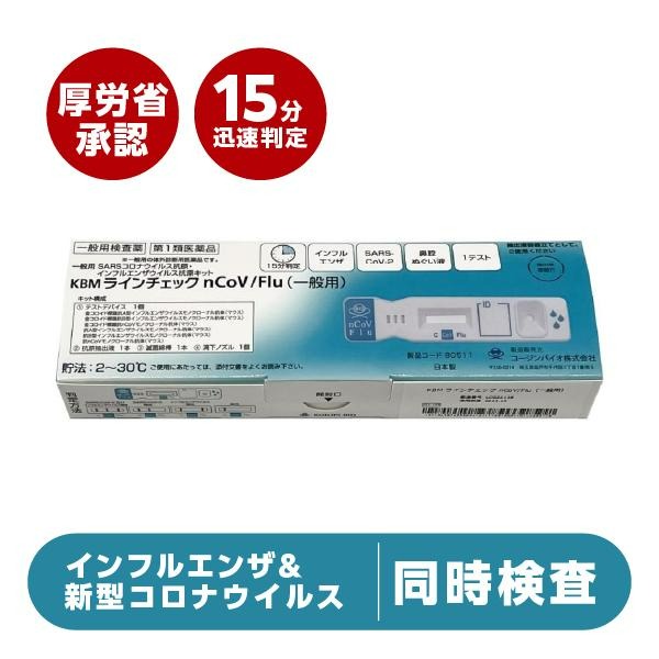 \翌日お届けエリア有/ 厚生労働省承認済 インフルエンザ コロナ 同時検査キット 『KBMラインチェック ...