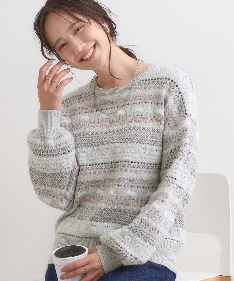 SHOO・LA・RUE 【旭山動物園応援商品】ノルディック柄 モールニット シューラルー トップス ニット オレ...