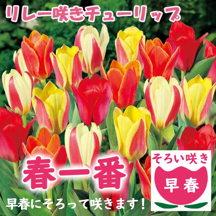 リレー咲き チューリップ 球根 春一番【 早春 そろい咲き 】7球 アソート 花の大和