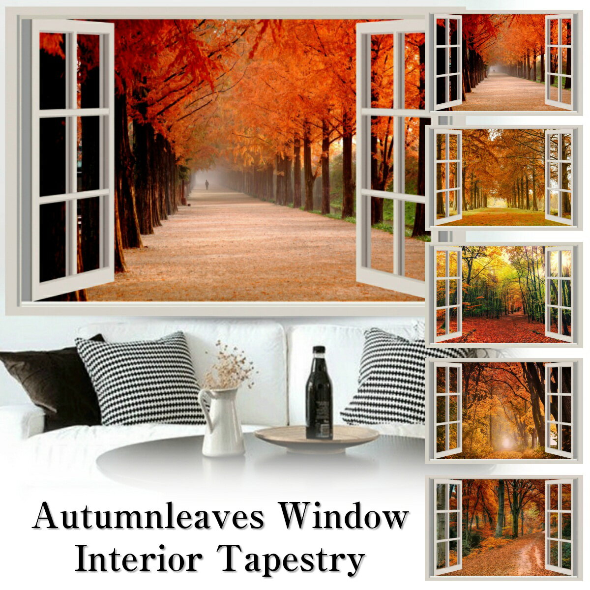 紅葉 タペストリー もみじ コスモス イチョウ 秋 木 季節 風景 景色 窓 だまし絵 森 山 和風 きれい さ...