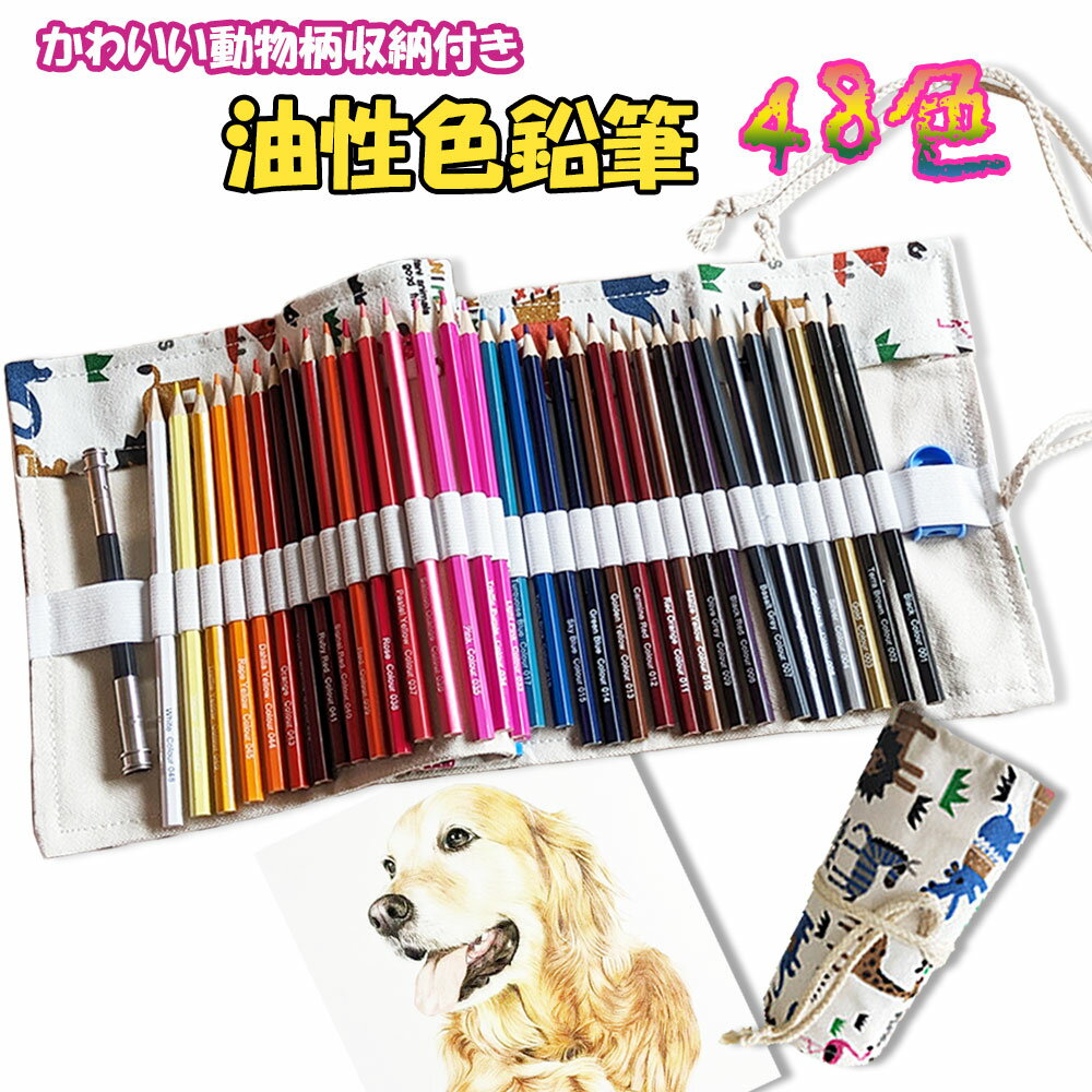 油性色鉛筆 48色 動物柄 収納付き かわいい 色鉛筆セット 発色 の 良い 色鉛筆 いろえんぴつ 油性 初心...