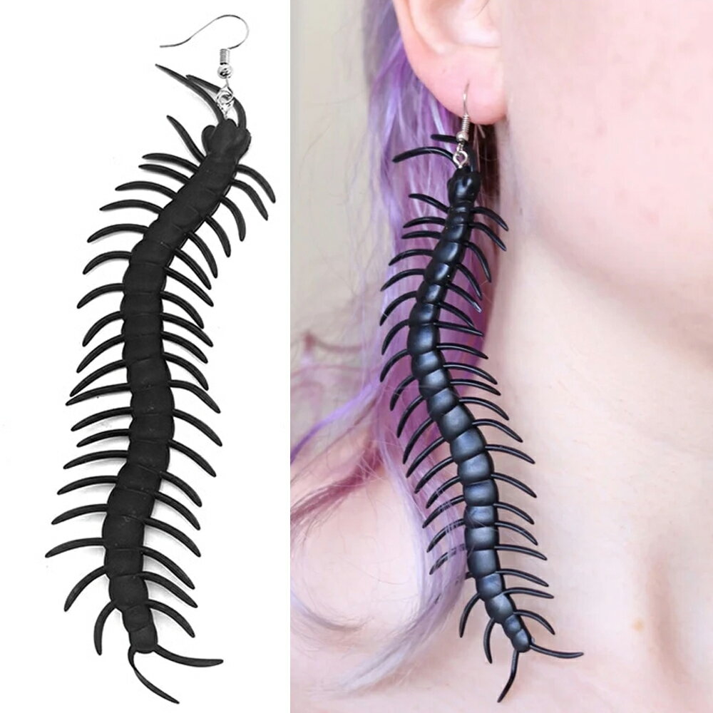 ラバー製の大きな黒色のリアルな百足(むかで)が揺れるステンレスピアス。 リアルなヤスデやムカデのフックピアスは、見る人を注目させる面白いステンレスピアスです。 ドッキリやサプライズなど驚かせることが...